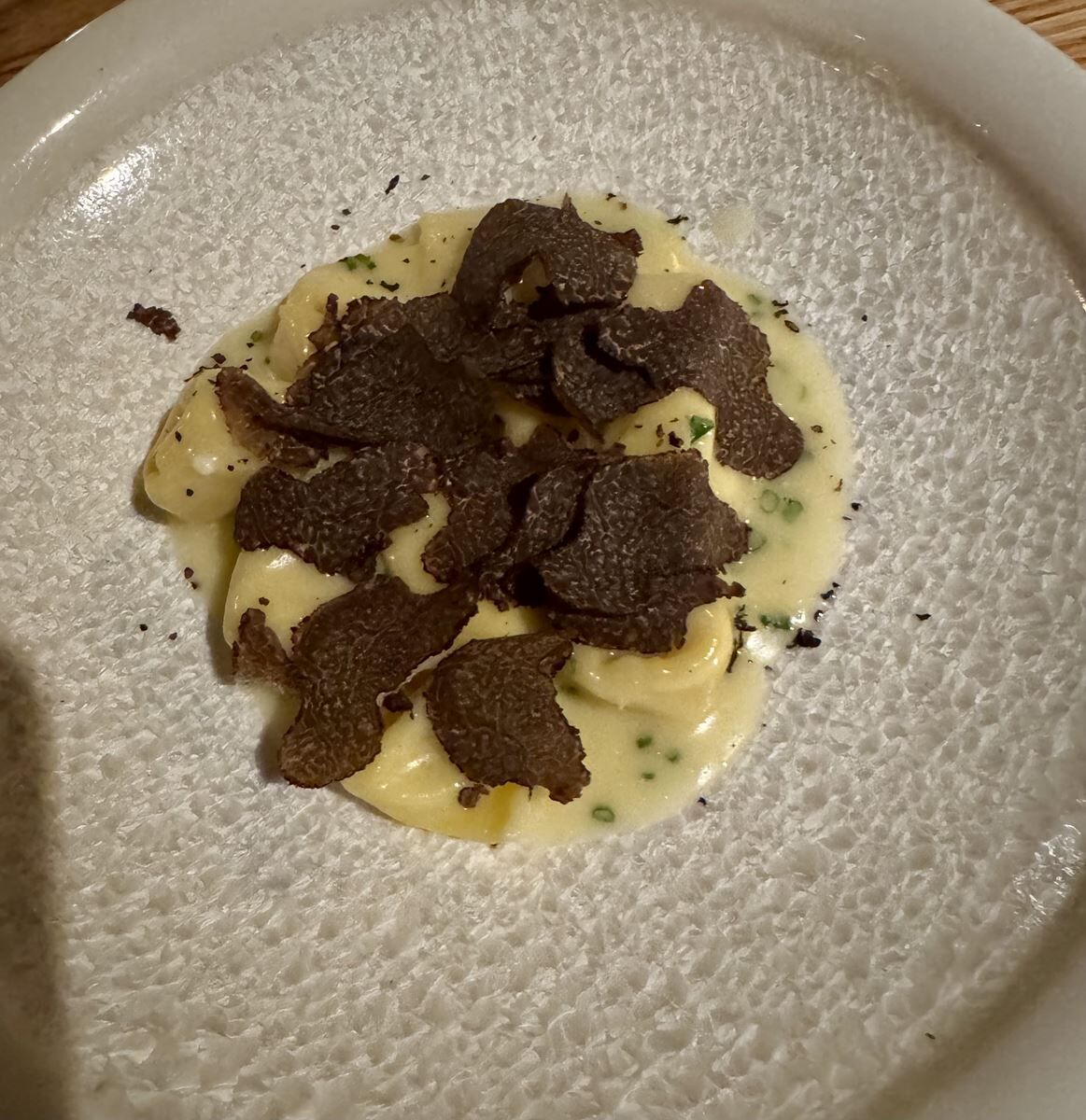 Their mains consisted mostly of pasta, and we ordered three to try for the table. The Ricotta Tortellini had a parmesan butter sauce, chives, lemon, and a generous shaving of Périgord black truffles on top. It was so delicious and creamy. The Parmesan butter sauce was rich and creamy yet light at the same time, and the truffles added an incredible depth of flavor. The other pastas we ordered were also amazing and I’m truly not sure which I liked more.